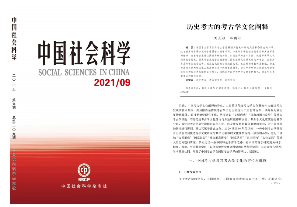 《歷史考古的考古學文化闡釋》發表于《中國社會科學》2021年第9期