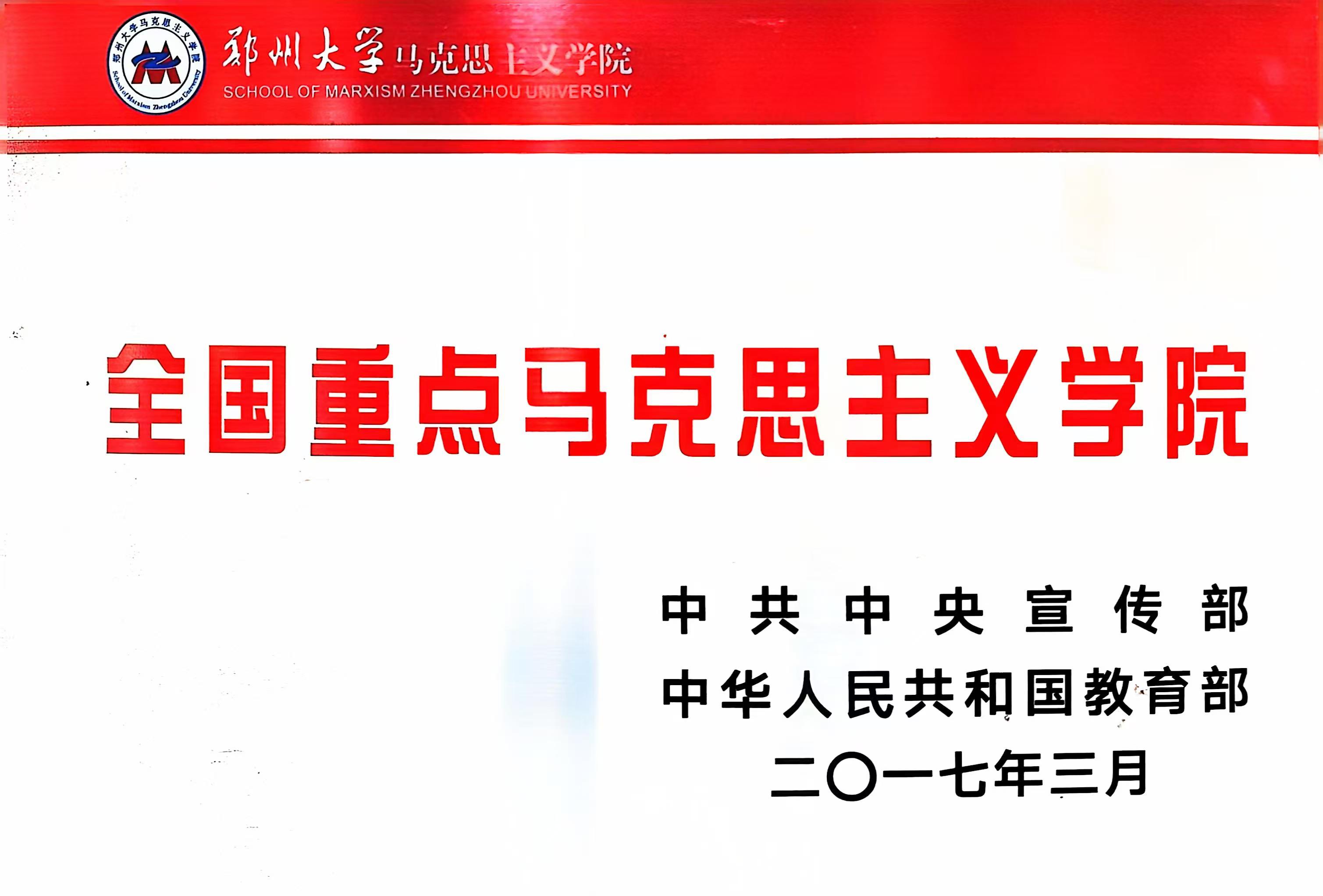 鄭州大學(xué)馬克思主義理論學(xué)科始于1956年鄭州大學(xué)馬列主義教研室。1985年,經(jīng)教育部批準(zhǔn),招收思想政治教育專業(yè)本科生。1996年,獲批馬克思主義理論與思想政治教育二級學(xué)科碩士點。2006年,獲批思想政治教育二級學(xué)科博士學(xué)位授權(quán)點、馬克思主義理論一級學(xué)科碩士學(xué)位授權(quán)點。2011年,獲批馬克思主義理論一級學(xué)科博士學(xué)位授權(quán)點。2012年,設(shè)立馬克思主義理論一級學(xué)科博士后科研流動站。2017年,在教育部第四輪學(xué)科評估中獲評B+。2020年,思想政治教育專業(yè)被評為國家級一流本科專業(yè)。