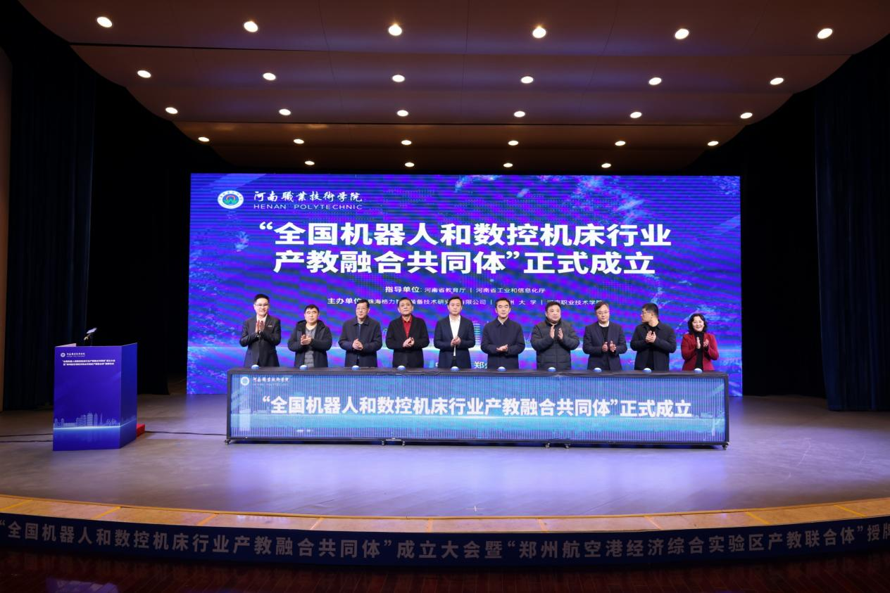 全國機器人和數控機床行業產教融合共同體由鄭州大學、珠海格力智能裝備技術研究院有限公司和河南職業技術學院牽頭發起,聯合全國百余家行業組織、學校、科研機構、上下游企業等共同組建。通過“兩翼”載體,推動校企合作辦學、合作育人、合作就業、合作發展,協同培養大批高技能人才,實現校企高效對接,服務產教深度融合,助力行業企業高質量發展。