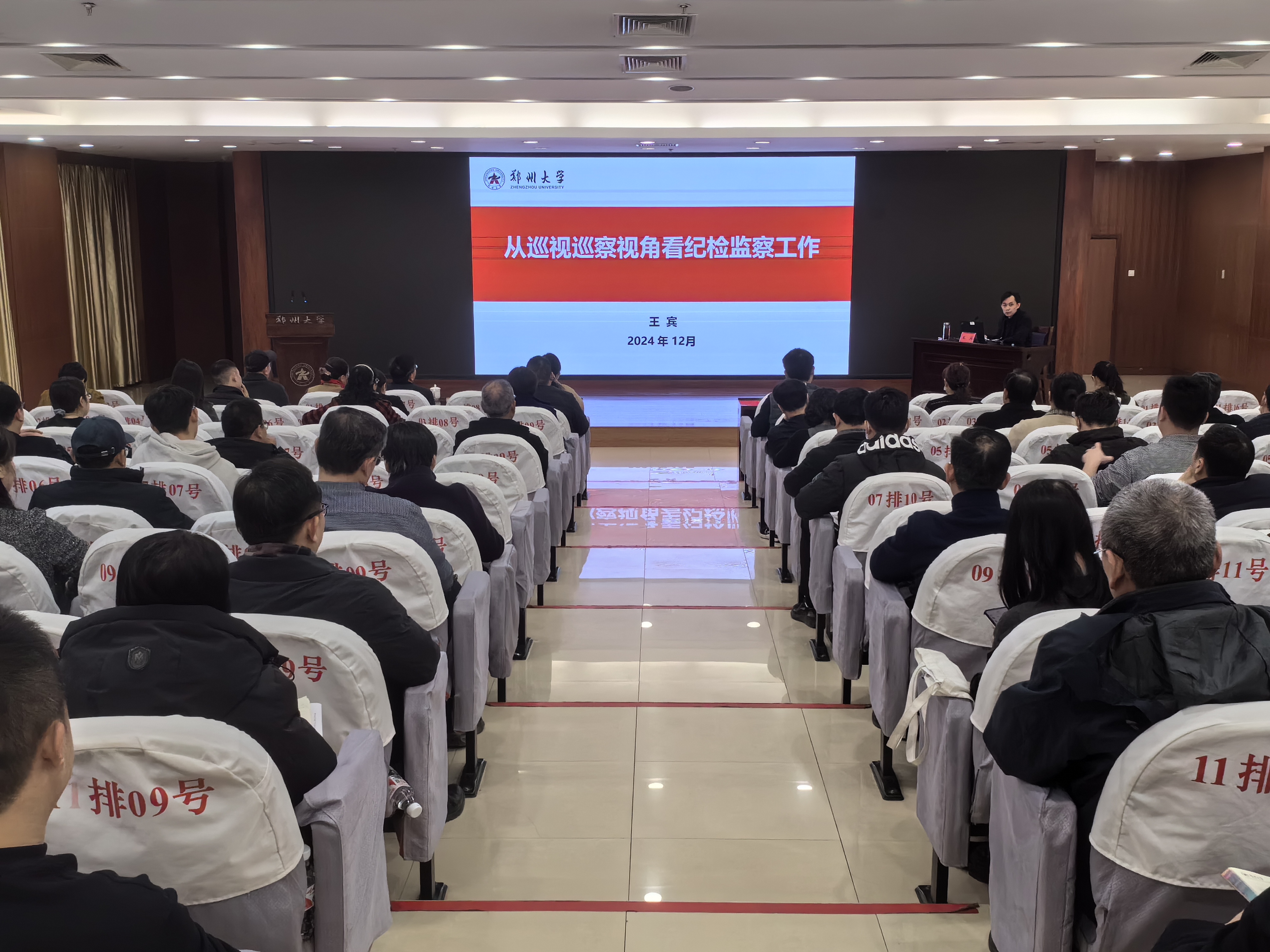 近日,鄭州大學(xué)紀(jì)委、監(jiān)察專員辦公室在主校區(qū)舉辦“清風(fēng)鄭大講堂”第三期講座。校黨委常委、紀(jì)委書記、監(jiān)察專員陳曦出席報告會。校紀(jì)委副書記、黨委巡察辦主任王賓授課。校紀(jì)委委員,校紀(jì)委、黨委巡察機(jī)構(gòu)全體干部,基層紀(jì)委書記、紀(jì)檢委員,直屬附屬醫(yī)院全體紀(jì)檢監(jiān)察干部100余人參加報告會。會議由校紀(jì)委負(fù)責(zé)同志主持。